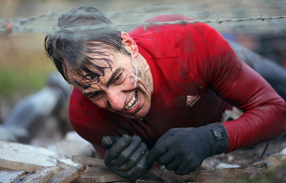 1月31日,在英國小鎮(zhèn)Perton舉行了一場硬漢挑戰(zhàn)賽。圖片來源:中國新聞網(wǎng)