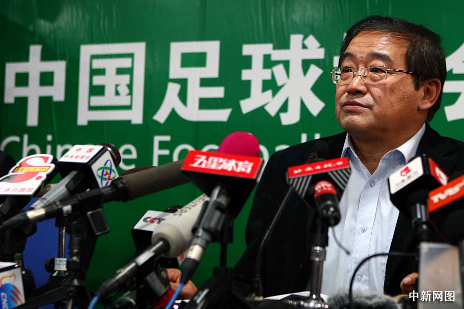 圖為中國足協(xié)新任掌門人韋迪召開首個新聞發(fā)布會現(xiàn)場。中新社記者 富田 攝