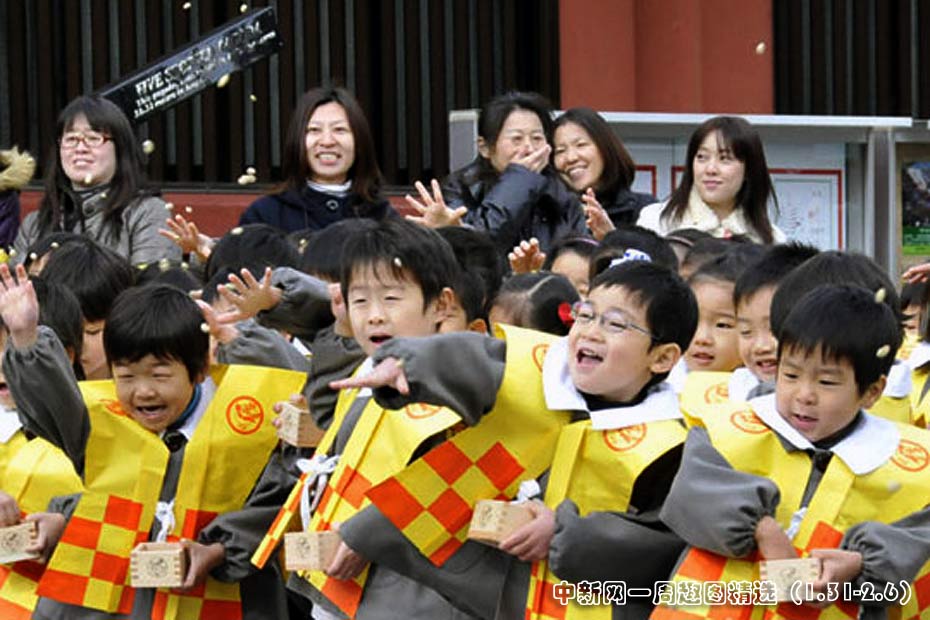 2月3日,日本首都東京,幼兒園小朋友們?cè)凇肮?jié)分”的撒豆驅(qū)邪儀式上投擲大豆。圖片來(lái)源:中國(guó)新聞網(wǎng)>>點(diǎn)擊觀看詳細(xì)內(nèi)容