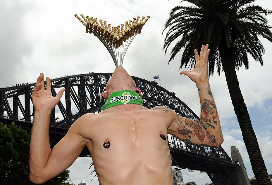 2月8日,街頭藝人Chayne Hultgren在澳大利亞悉尼海港大橋前,一次吞下18把厚約1.3厘米,長(zhǎng)約50.8厘米的長(zhǎng)劍,刷新了吉尼斯世界紀(jì)錄。圖片來(lái)源:中國(guó)新聞網(wǎng)