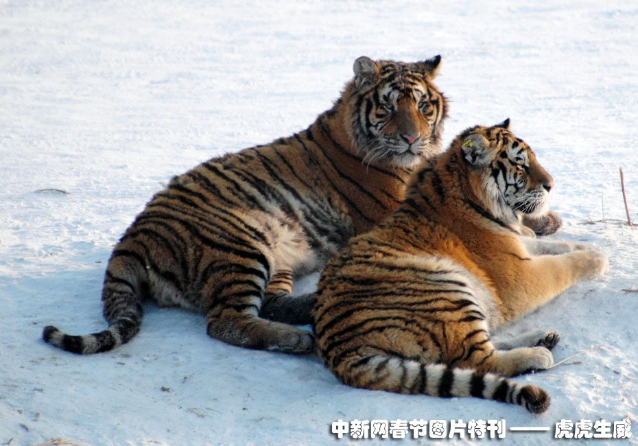 1月13日,黑龍江東北虎林園,老虎在雪地中嬉戲追逐。(王少華 張書儉 攝) 圖片來源:中國(guó)新聞網(wǎng)