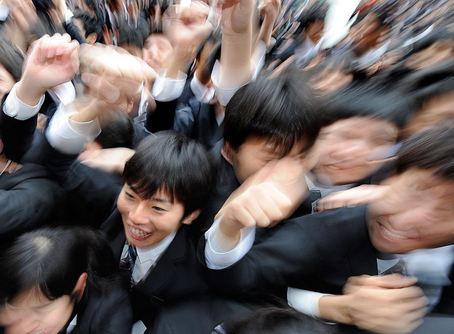 2月10日,日本東京職業(yè)學校的學生在求職動員會上伸出拳頭展現(xiàn)信心。日本的失業(yè)率達5%,2011屆畢業(yè)生將面臨嚴峻就業(yè)形式。圖片來源:中國新聞網(wǎng)