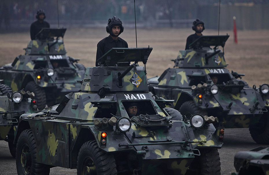 當(dāng)?shù)貢r間2月12日,尼泊爾士兵在首都加德滿都舉行了建軍節(jié)閱兵式。尼泊爾總統(tǒng)和總參謀長檢閱了受閱部隊。圖片來源:中國新聞網(wǎng)