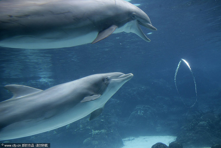近日,美國奧蘭多海洋世界的一只寬吻海豚吹出“心形”氣泡,似乎要在情人節(jié)來臨前夕傳達濃濃愛意。圖片來源:CFP
