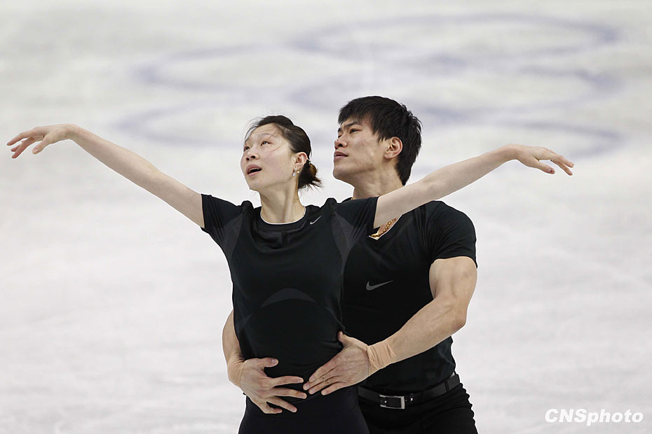 當(dāng)?shù)貢r(shí)間2月13日,中國花樣滑冰隊(duì)龐清/佟健、張丹/張昊在溫哥華太平洋體育館,利用最后的休息時(shí)間重復(fù)練習(xí)積極備戰(zhàn)即將到來的比賽。中新社記者 盛佳鵬 攝