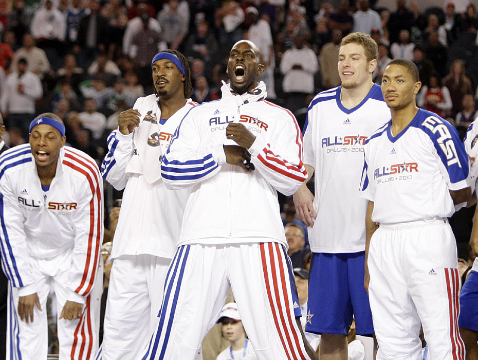 美國(guó)當(dāng)?shù)貢r(shí)間2月14日,2010NBA全明星周末,東部明星隊(duì)以141比139險(xiǎn)勝西部明星隊(duì)。整場(chǎng)比賽猶如度假一般全無緊張氣氛。圖片來源:中國(guó)新聞網(wǎng)