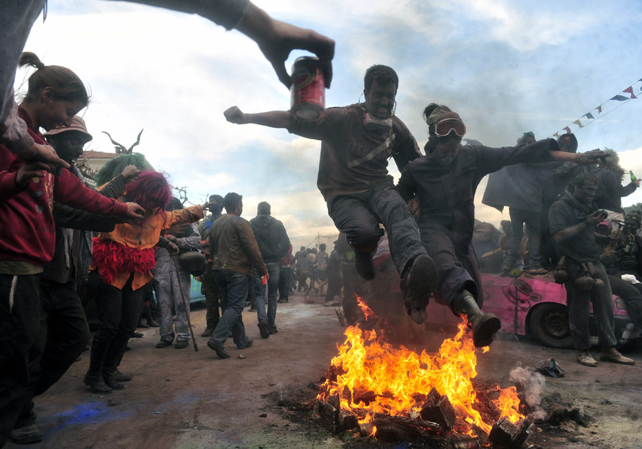 2月15日,希臘港口加拉西迪,狂歡者在街頭參加“面粉大戰(zhàn)”!懊娣鄞髴(zhàn)”是當(dāng)?shù)貞c?駳g季結(jié)束的一項(xiàng)傳統(tǒng)活動(dòng),隨后將是為期40天的齋戒月直至復(fù)活節(jié)。圖片來(lái)源:中國(guó)新聞網(wǎng)