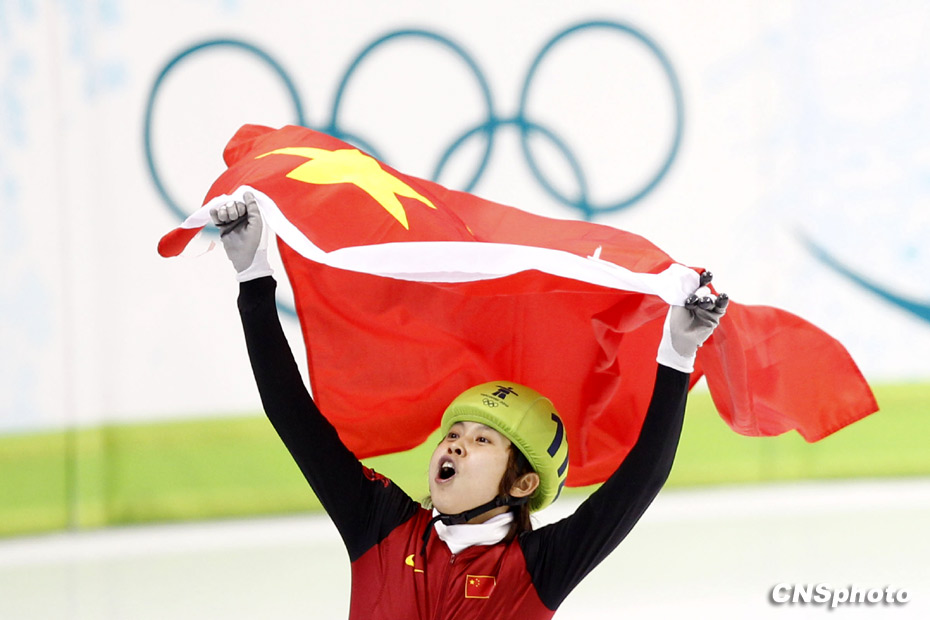 2010年溫哥華冬奧會(huì)短道速滑女子500米決賽北京時(shí)間2月18日上午11時(shí)許舉行,中國(guó)選手王濛獲得冠軍,為中國(guó)代表團(tuán)再添一枚金牌。中新社發(fā) 盛佳鵬 攝 圖片來(lái)源:中國(guó)新聞網(wǎng)