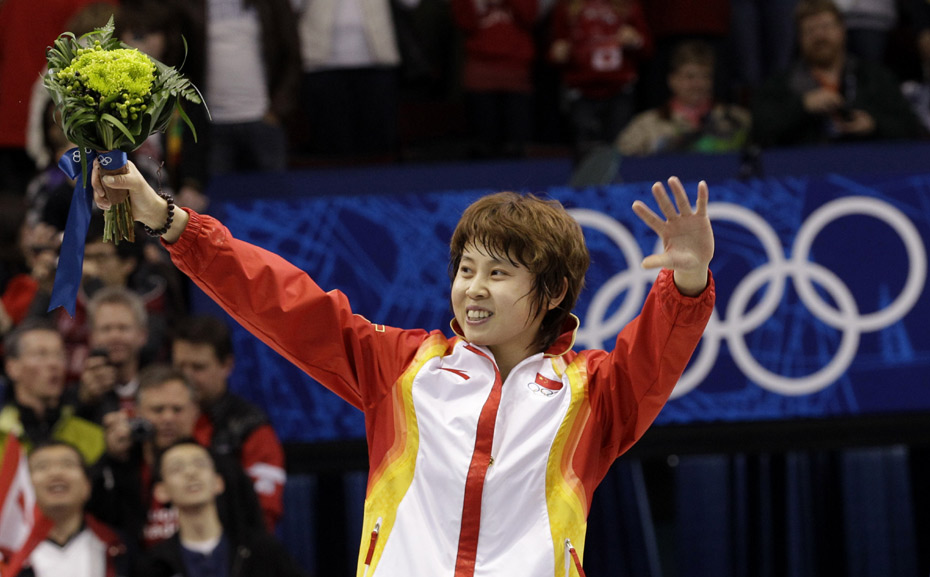 2010年溫哥華冬奧會(huì)短道速滑女子500米決賽北京時(shí)間2月18日上午11時(shí)許舉行,中國(guó)選手王濛獲得冠軍,為中國(guó)代表團(tuán)再添一枚金牌。圖片來(lái)源:中國(guó)新聞網(wǎng)