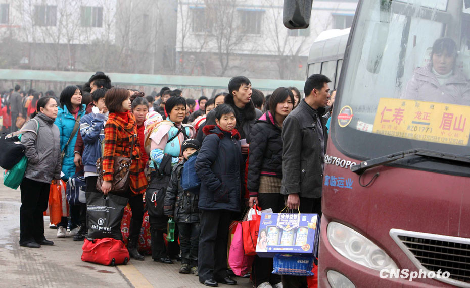 2月19日,隨著春節(jié)假期即將結(jié)束,四川省樂山、眉山、成都等地返程旅客越來越多,公路、鐵路、航空都迎來節(jié)后返程客流高峰期,僅仁壽客運中心前往成都、瀘州、重慶以及上海、深圳等地的73條客運線路的1300個班次趟趟滿員,旅客量高達2.5萬人。中新社發(fā) 劉忠俊 攝