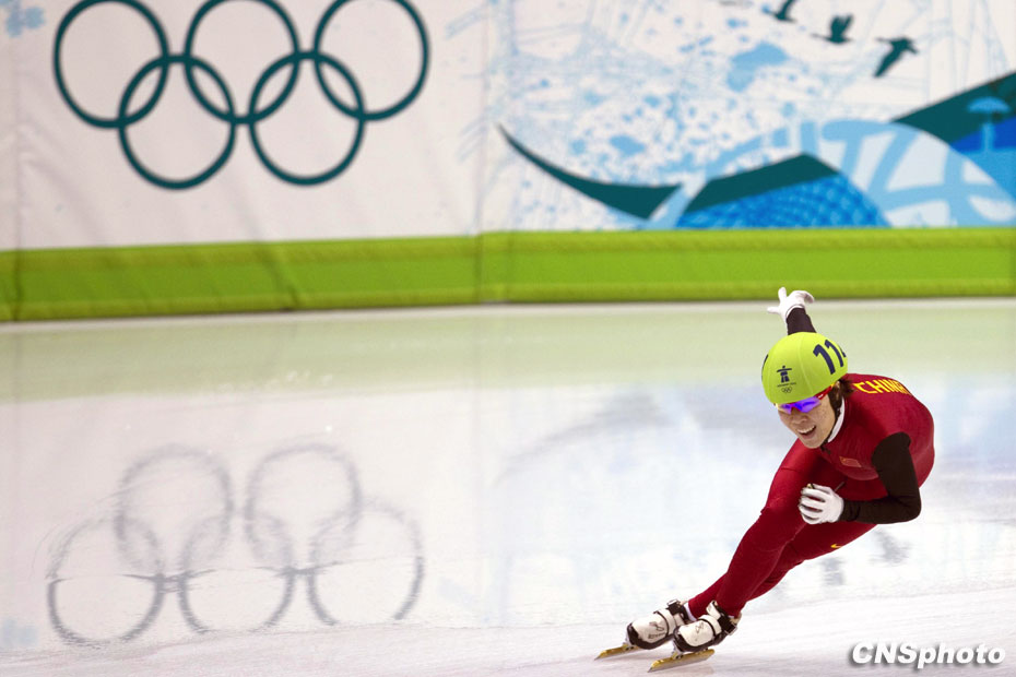 2月21日中午,剛剛結(jié)束的冬奧會短道速滑女子1500米決賽中,中國選手周洋力壓各路名將,以破奧運會紀錄的2分16秒993的成績奪冠,為中國代表團添得第三金。中新社發(fā) 盛佳鵬 攝