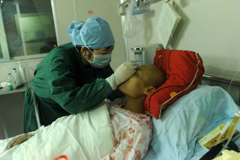 圖為病房內(nèi)邵帥的母親被護(hù)士照料。朱嘉磊/CFP