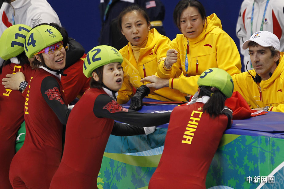 中國(guó)短道速滑隊(duì)25日在溫哥華冬奧會(huì)上奪得女子接力金牌,實(shí)現(xiàn)了歷史性突破。中新社記者盛佳鵬 攝