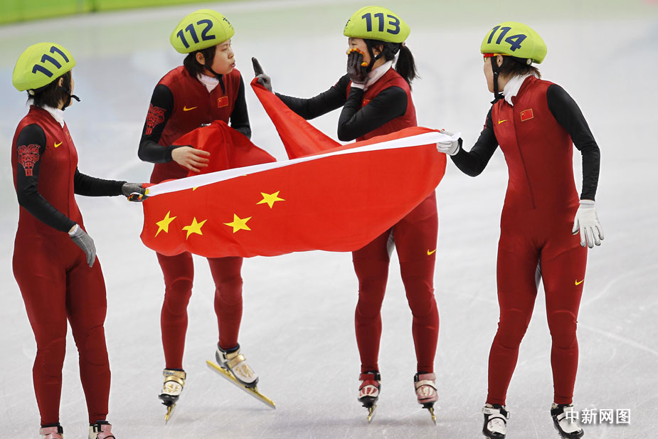 在裁判宣布韓國隊犯規(guī)后,一直等候著最終結(jié)果的中國姑娘忘情地?fù)湎蚪叹毾。圖片清楚地顯示,興奮的王濛撲到教練李琰前面寬寬的防護墊上,她的右腿無意間高高抬起,冰刀刮到了跟在她身后的張會的下巴。王濛意識到自己闖了禍,馬上關(guān)切地回頭察看張會的傷情。四位姑娘舉著國旗慶祝勝利時,張會用手捂著她的下巴,漸漸地鮮血浸濕了她的手套。