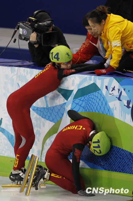 北京時(shí)間27日中午,中國(guó)選手王濛在2010年溫哥華冬奧會(huì)短道速滑女子1000米的決賽中摘得金牌,至此,中國(guó)短道速滑女隊(duì)包攬了本屆冬奧會(huì)女子全部四個(gè)項(xiàng)目的金牌創(chuàng)造了歷史。中新社發(fā) 盛佳鵬攝