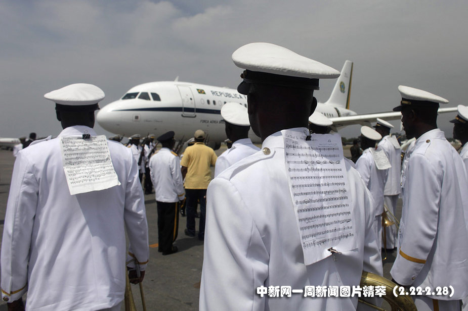 25日(周四),巴西總統(tǒng)盧拉抵達海地首府太子港,海地的榮譽樂隊在機場迎接。