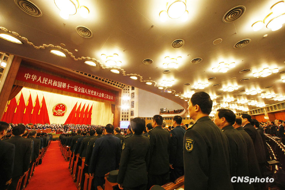 3月5日上午9時(shí),十一屆全國人大三次會(huì)議在北京隆重開幕。國務(wù)院總理溫家寶作政府工作報(bào)告。圖片來源:中國新聞網(wǎng)