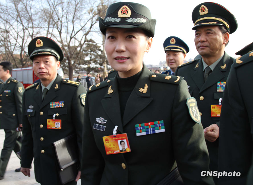 3月5日上午9時(shí),十一屆全國人大三次會(huì)議在北京隆重開幕。國務(wù)院總理溫家寶作政府工作報(bào)告。圖為來自解放軍代表團(tuán)的青年歌唱家譚晶步入會(huì)場(chǎng)。中新社發(fā) 韓蘇原 攝