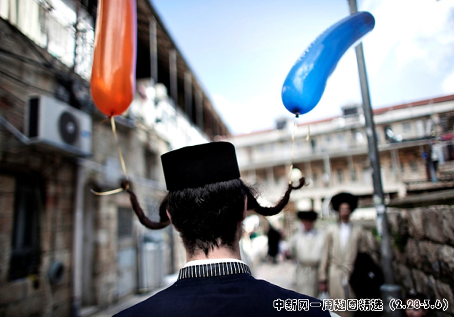3月1日,耶路撒冷一名正統(tǒng)猶太教男子將氣球綁在他的頭發(fā)上慶祝普林節(jié)(Purim)的到來。這一節(jié)日是用來紀(jì)念猶太人從古波斯人的統(tǒng)治下獲得解放。圖片來源:中國新聞網(wǎng)>>點(diǎn)擊觀看詳細(xì)內(nèi)容