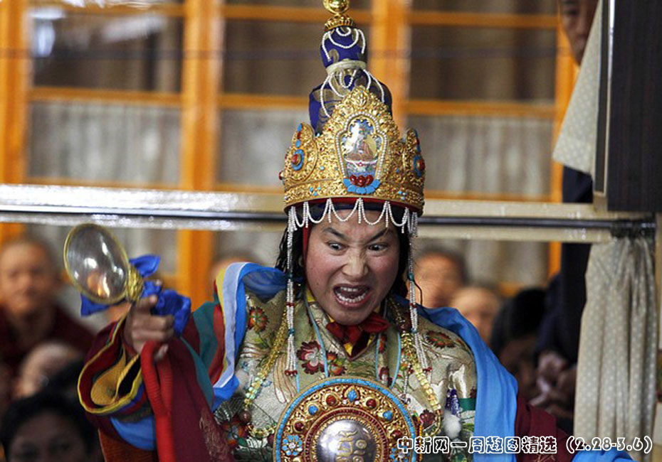 3月2日,在印度達蘭薩拉,西藏神使慈仁敬安正在進行降神儀式。圖片來源:中國新聞網(wǎng)>>點擊觀看詳細內容
