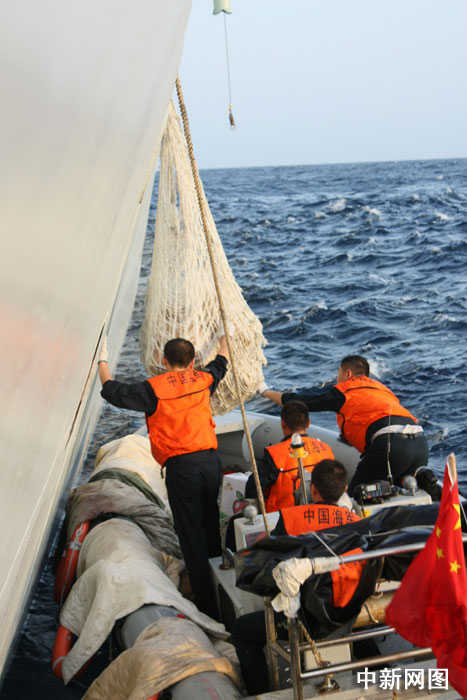 09年4月在西印度洋遭索馬里海盜挾持的臺(tái)灣遠(yuǎn)洋漁船“穩(wěn)發(fā)161號(hào)”,歷經(jīng)各方營救,終于在遭挾持10個(gè)多月后,包括船長(zhǎng)顏勝男等共28人返回高雄港。圖片來源:中國新聞網(wǎng)