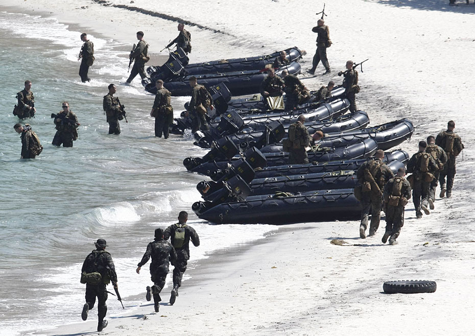 3月9日,美國與菲律賓在菲律賓甲米地省南部特爾納特海軍基地舉行聯(lián)合軍事演習(xí)。此次軍演雙方共出動了數(shù)百名作戰(zhàn)人員。圖片來源:中國新聞網(wǎng)