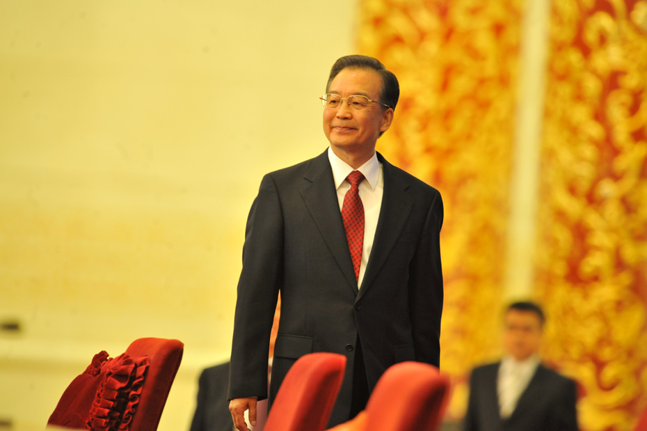 3月14日上午,國務院總理溫家寶在人民大會堂三樓金色大廳與采訪十一屆全國人大三次會議的中外記者見面并回答記者提出的問題。溫家寶總理闊步走進金色大廳。中新社記者 賈國榮 攝 圖片來源:中國新聞網(wǎng)