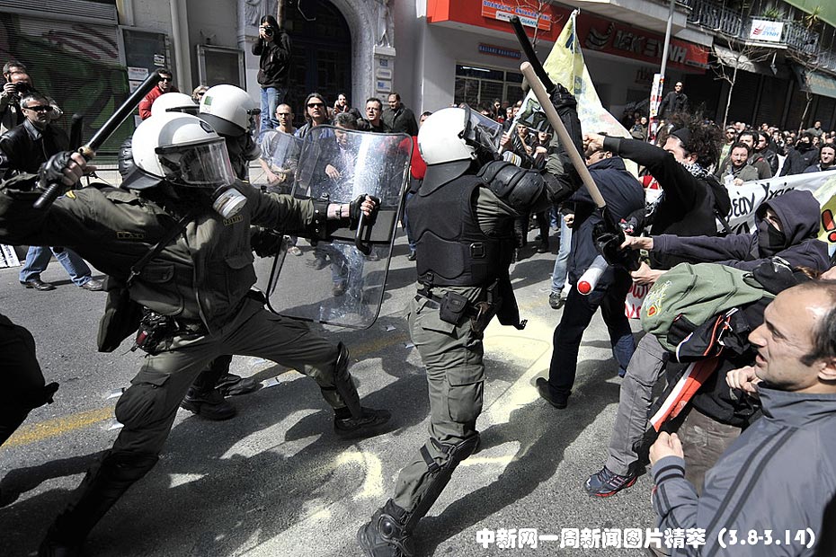 周四,希臘雅典的罷工者與防暴警察發(fā)生沖突。圖片來源:中國(guó)新聞網(wǎng)