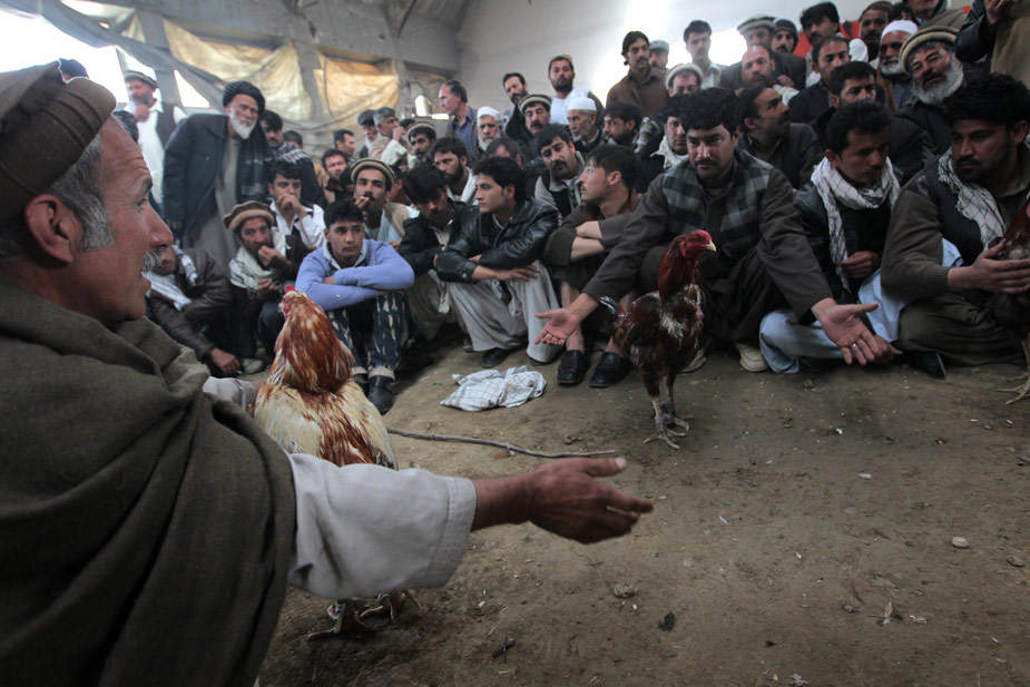 當(dāng)?shù)貢r間3月12日,在阿富汗首都喀布爾,觀眾們正在觀看傳統(tǒng)的斗雞比賽。圖片來源:中國新聞網(wǎng)