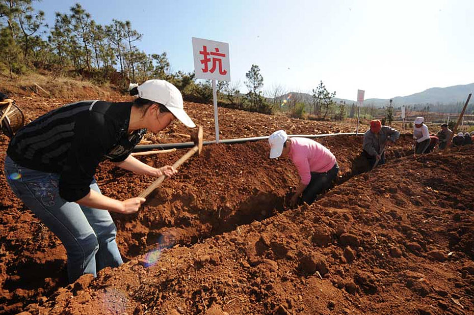 中國西南部分地區(qū)遭受了六十年甚至百年一遇的特大旱災,給春耕備耕帶來不利影響。受災各地民眾在當?shù)卣膸ьI(lǐng)下打響了萬眾一心降伏旱魃的戰(zhàn)役。