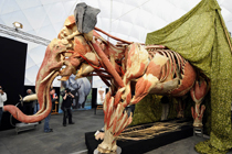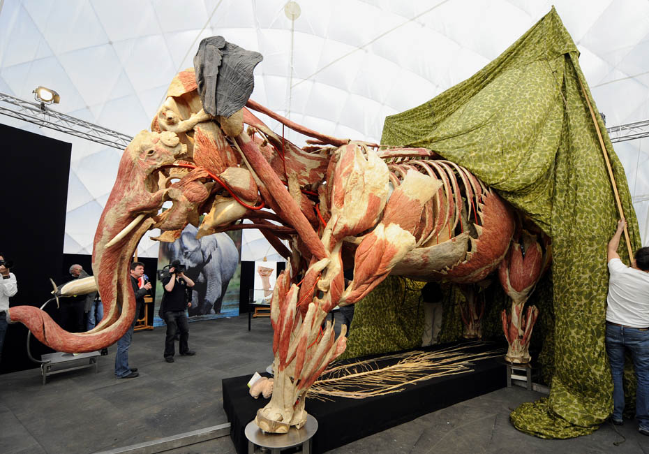 德國著名解剖學(xué)家鞏特爾·馮·哈根斯博士被稱為“死亡先生”,目前展出的是有史以來的最大的動(dòng)物尸體。體型巨大的“桑芭”尸體高3.5米,重3.2噸。據(jù)悉“桑芭”將于2010年4月歸還諾因基興動(dòng)物園。圖片來源:中國新聞網(wǎng)