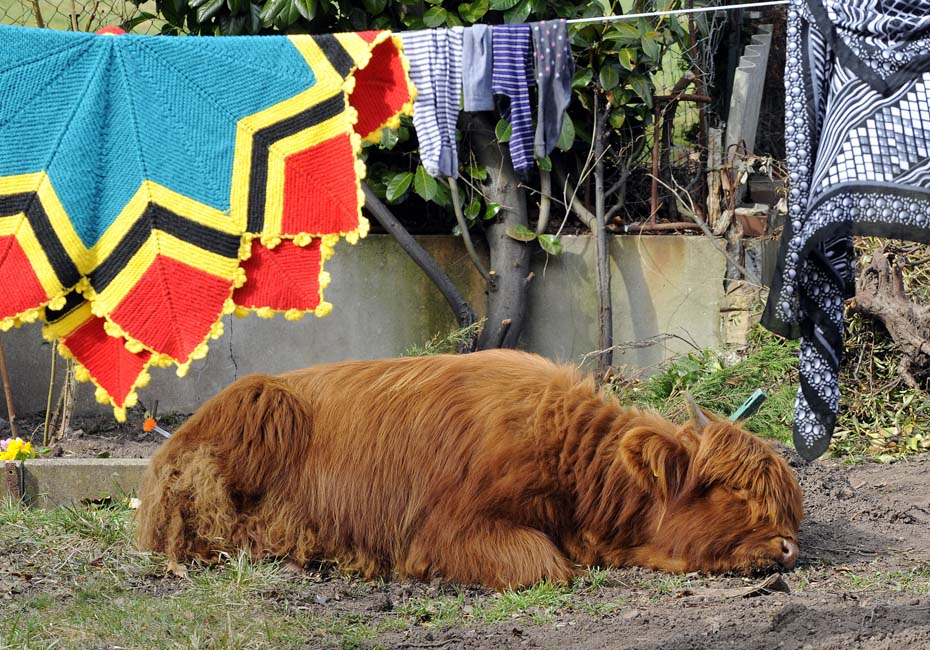 3月18日,德國一頭蘇格蘭高地牛來到一居民院內懶洋洋的曬太陽,最后經過獸醫(yī)的麻醉和消防員協(xié)力才將這頭蠻力十足的家伙“制服”。圖片來源:中國新聞網
