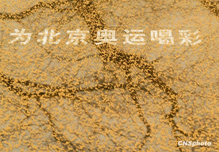 3月20日,春季首場(chǎng)重度浮塵天遮蓋了整個(gè)北京城。圖為一輛轎車的后車窗上布滿黃沙。中新社發(fā) 廖攀 攝