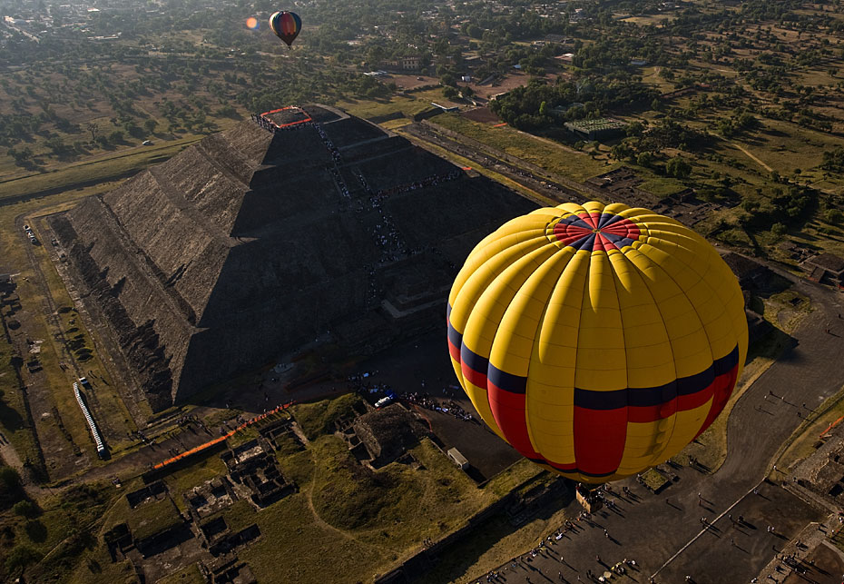 當(dāng)?shù)貢r(shí)間3月21日,熱氣球從墨西哥特奧蒂瓦坎上空飛過。墨西哥近日在特奧蒂瓦坎附近舉行熱氣球節(jié)迎接春分的到來。圖片來源:中國新聞網(wǎng)