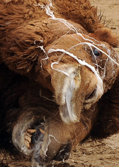 3月22日,阿富汗舉行傳統(tǒng)的都駱駝大賽慶祝阿富汗新年。斗駱駝在阿富汗是一項(xiàng)頗受民眾喜歡的運(yùn)動(dòng)。