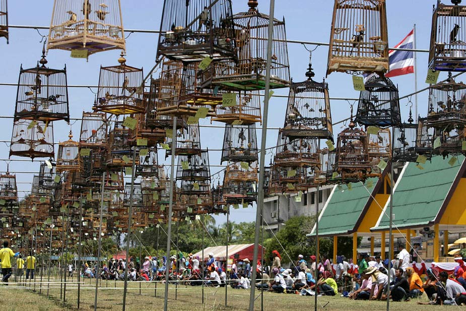 3月24日,一場“鳥兒唱歌”大賽在泰國南部的那拉提瓦府舉行。圖片來源:中國新聞網(wǎng)