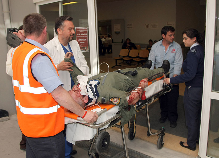 圖為英國“紅箭”特技飛行隊傷員抵達醫(yī)院接受治療。