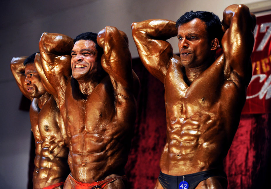 3月24日,印度舉辦第37屆健美錦標(biāo)賽,來自陸軍、空軍和海軍的防務(wù)人員在健美比賽上大秀肌肉展現(xiàn)男性魅力。圖片來源:中國新聞網(wǎng)