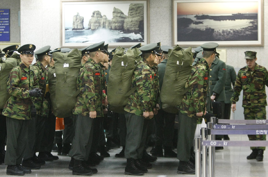 首爾當(dāng)?shù)貢r(shí)間26日晚9點(diǎn)45分許,在韓國(guó)西部海域執(zhí)行警戒任務(wù)的天安艦(1200噸級(jí))因不明原因事故,船底被炸開洞,船尾開始下沉。天安艦上共有104人,韓國(guó)巡邏艇和直升飛機(jī)迅速展開救援行動(dòng),事發(fā)5小時(shí)后,官員稱已救出58人,但因?yàn)閺?qiáng)風(fēng)和夜幕,救援行動(dòng)進(jìn)展緩慢,其它人員仍下落不明。圖為韓國(guó)海軍海上救援隊(duì)正在整裝準(zhǔn)備出發(fā)。