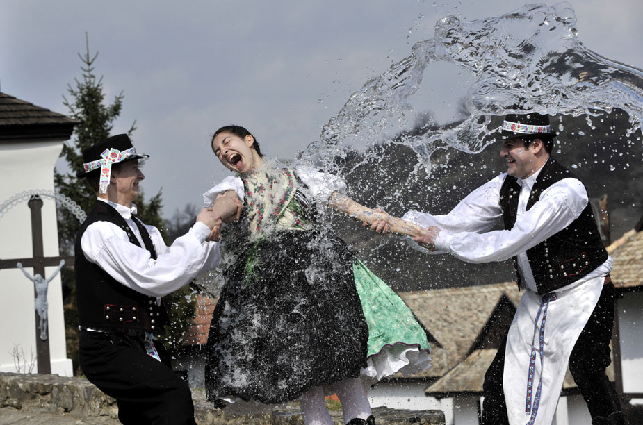 3月26日,在匈牙利首都布達(dá)佩斯以東被譽(yù)為世界文化遺產(chǎn)的霍洛克村,當(dāng)?shù)鼐用褚韵蚬媚锷砩蠞娝膫鹘y(tǒng)儀式慶祝復(fù)活節(jié)。此項(xiàng)古老習(xí)俗起源于公元2世紀(jì)。