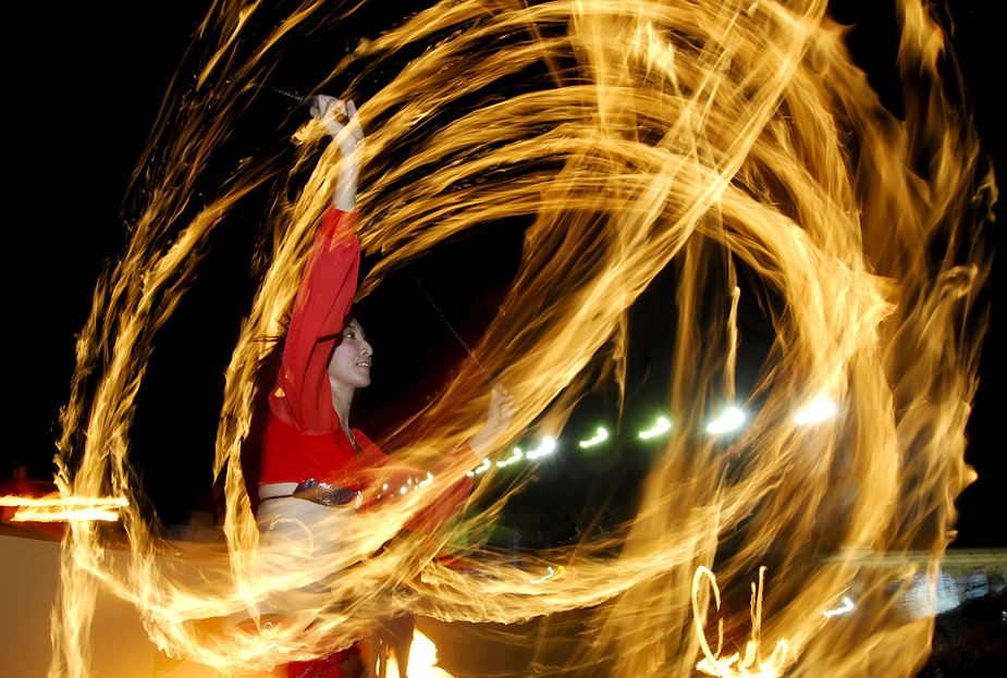 當(dāng)?shù)貢r間3月25日,在菲律賓馬尼拉,一名舞者在火焰中“熱舞”。