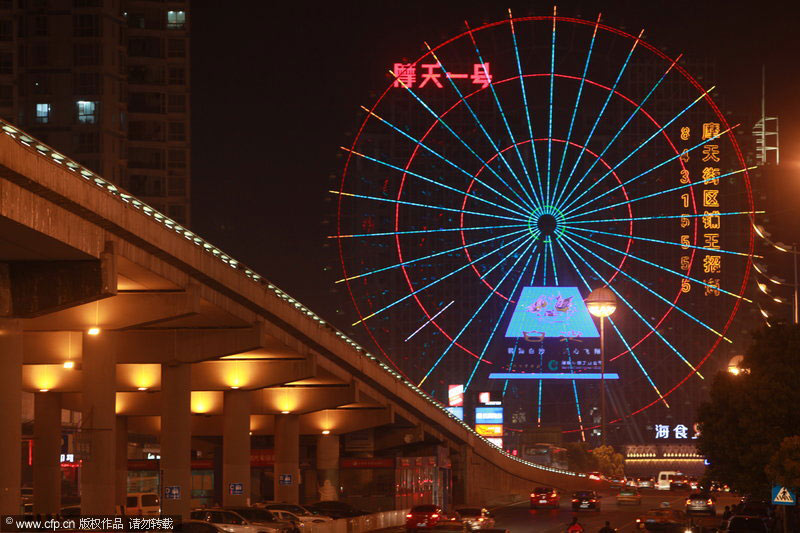 03月27日, 長沙,芙蓉中路的標志性建筑亞洲第一高摩天輪(熄燈前)。赤兔/CFP