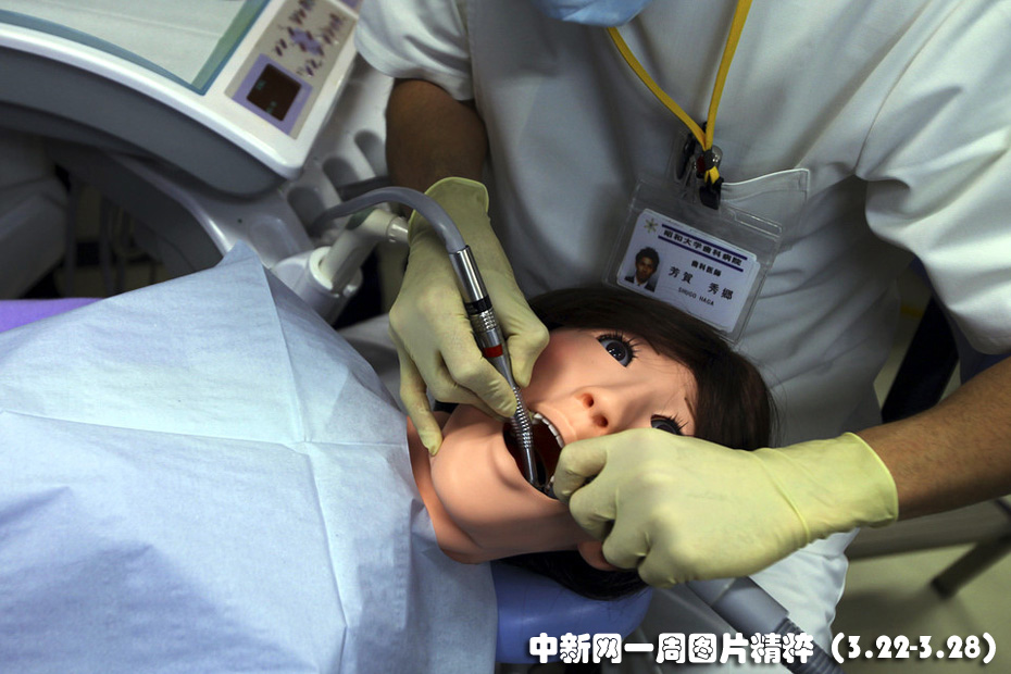 3月23日(周二),東京昭和大學(xué)一名牙醫(yī)正在一個名為花子的機(jī)器人身上演示治療操作。這個機(jī)器人是該校自主開發(fā)的,她的嘴會流血,也會分泌唾液。