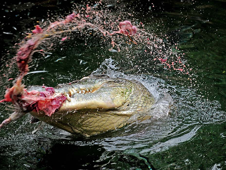 3月29日,澳大利亞悉尼野生動(dòng)物園的一條鱷魚(yú)雷克斯正在享受它的美味——雞肉。圖片來(lái)源:中國(guó)新聞網(wǎng)