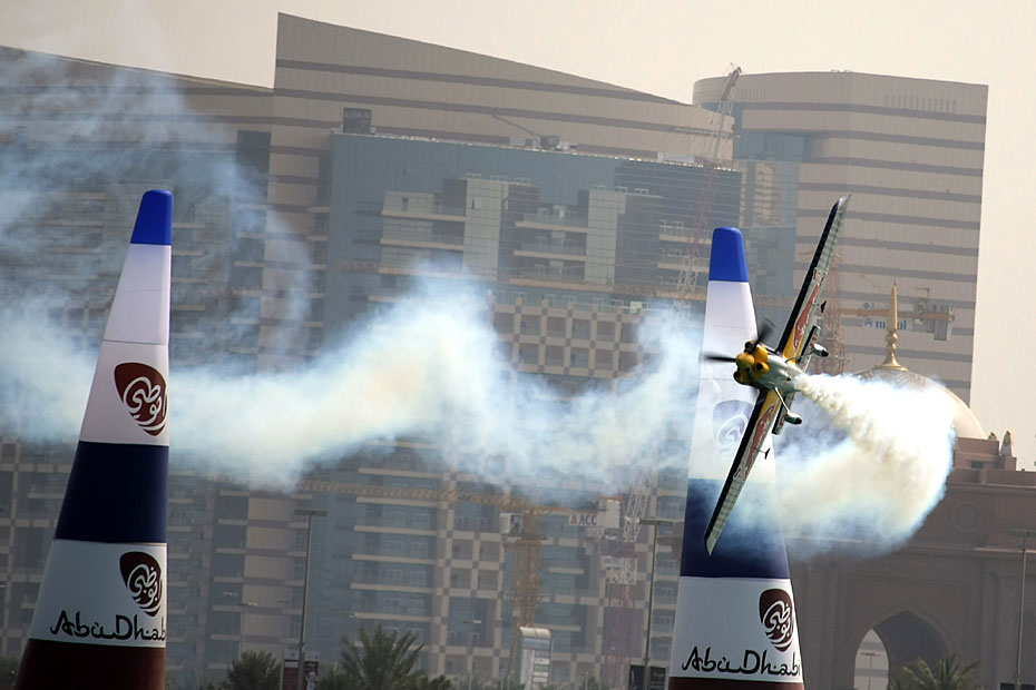 近日,紅牛飛行系列賽世界錦標(biāo)賽預(yù)選賽在阿拉伯聯(lián)合酋長(zhǎng)國(guó)阿布扎比舉行。參加比賽飛行員不但要有高速的駕駛技術(shù),還要有勇往直前的膽量。圖片來(lái)源:中國(guó)新聞網(wǎng)