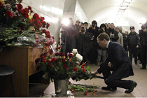 俄總統(tǒng)為遇難者獻(xiàn)花
