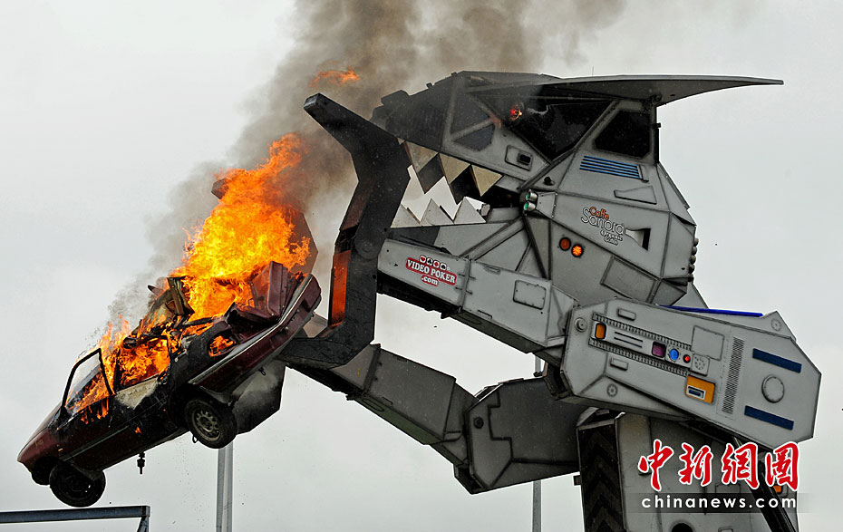 3月30日,一款重約27噸的機(jī)器怪獸在澳大利亞悉尼瞬間將一臺(tái)汽車(chē)摧毀。據(jù)悉,該款機(jī)器怪獸是由30多個(gè)公司花了兩年時(shí)間研究出來(lái)的。圖片來(lái)源:中國(guó)新聞網(wǎng)