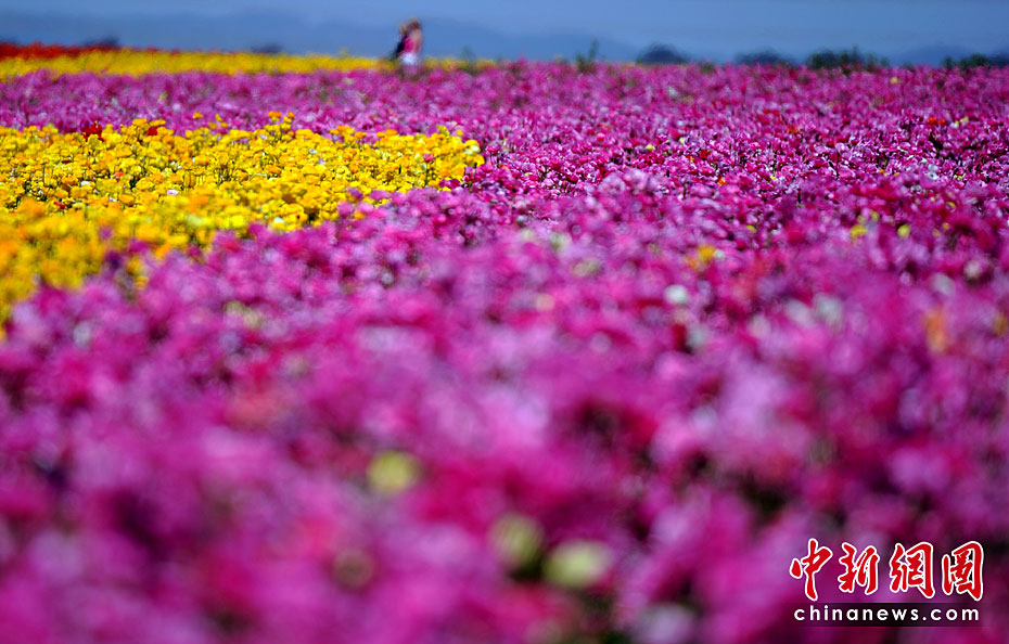 美國加利福尼亞州圣迭戈的卡爾斯巴德花田近日繁花盛開,姹紫嫣紅的花朵整齊地鋪滿在五十英畝的土地上,一望無垠的花海,美不勝收。圖片來源:中國新聞網(wǎng)