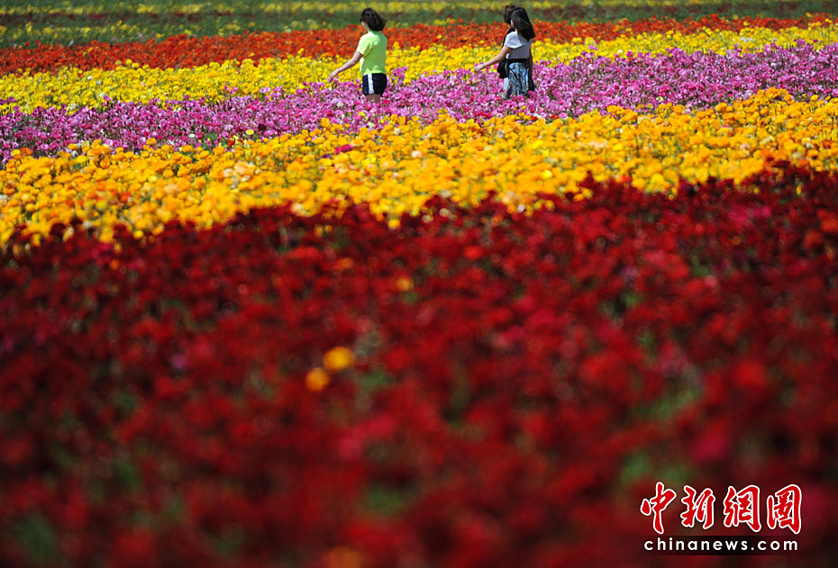 美國(guó)加利福尼亞州圣迭戈的卡爾斯巴德花田近日繁花盛開(kāi),姹紫嫣紅的花朵整齊地鋪滿在五十英畝的土地上,一望無(wú)垠的花海,美不勝收。圖片來(lái)源:中國(guó)新聞網(wǎng)