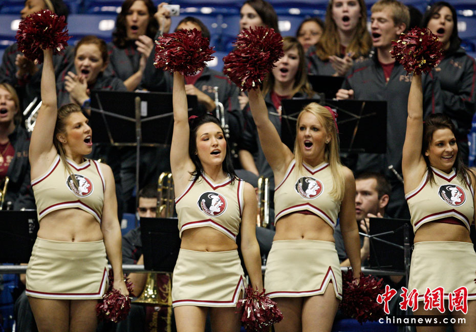 啦啦隊的歷史可追溯到原始部落時期,戰(zhàn)士們狩獵凱旋歸來時,人們給予歡呼及鼓勵的動作。最初的拉拉隊要追溯到19世紀(jì)80年代的美國大學(xué)校園,當(dāng)時的形式是在大學(xué)里的橄欖球賽上,一位領(lǐng)隊站在一大群人前面領(lǐng)導(dǎo)他們?yōu)樽约旱那蜿爡群爸。圖片來源:中國新聞網(wǎng)